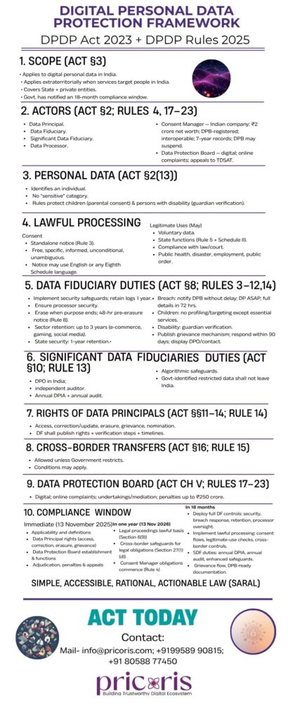 India has entered a new era of digital governance. With the Digital Personal Data Protection Act, 2023 (DPDP Act) and the subsequently notified DPDP Rules, 2025, organisations now have a clear, codified, and enforceable data protection regime—backed by timelines, duties, rights, and regulatory oversight.